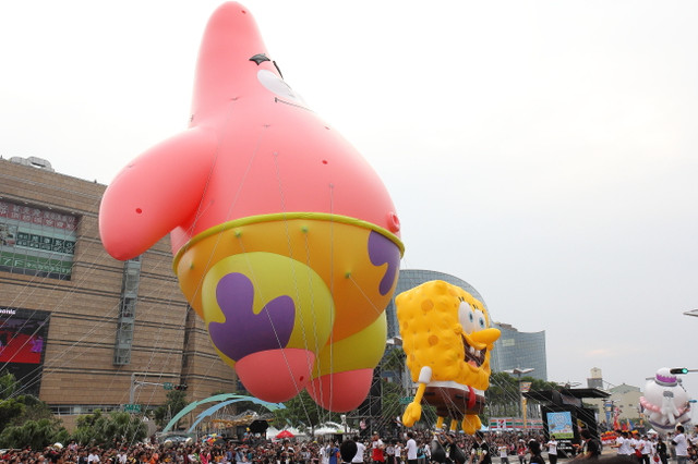 海綿寶寶做成大氣球真的蠻酷的,平常都小小一個 XD~