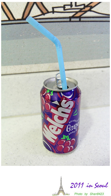 我們買了葡萄汽水,一下子就喝光光了~哈