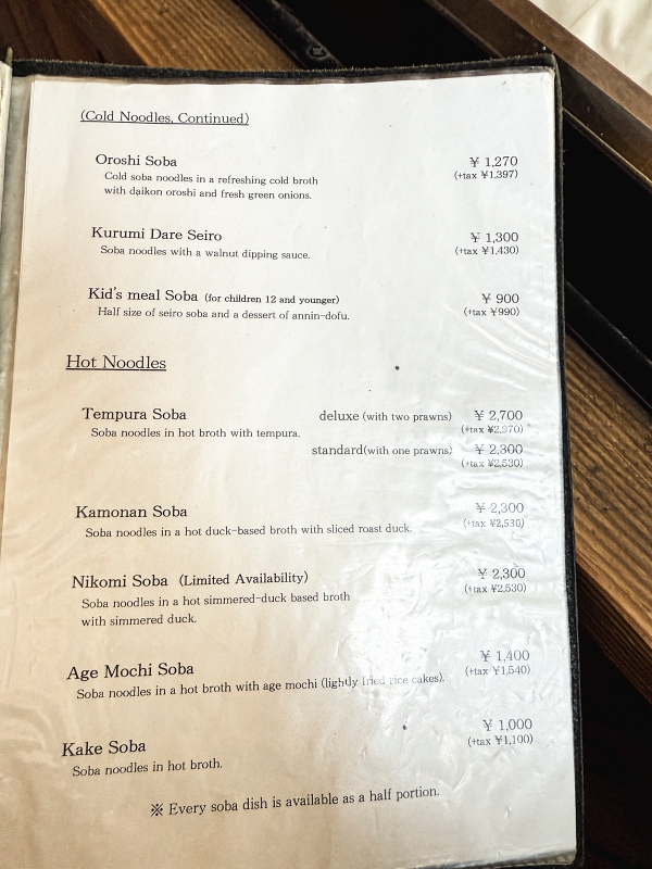 蕎麥麵可選冷麵、熱麵,午間還有套餐可選!