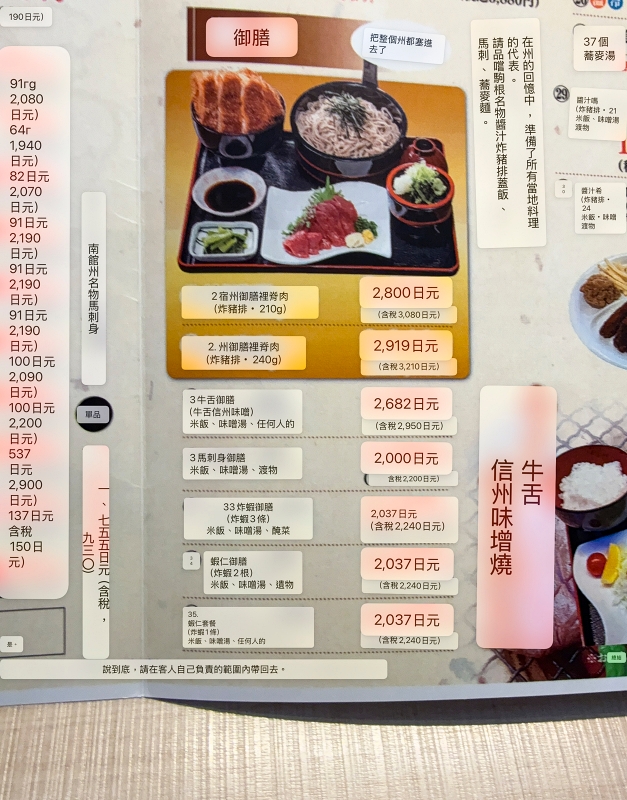 以「信州名物」醬汁炸豬排聞名,還有賣很特別的生馬肉!