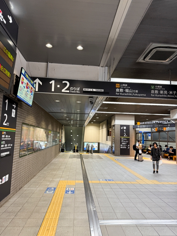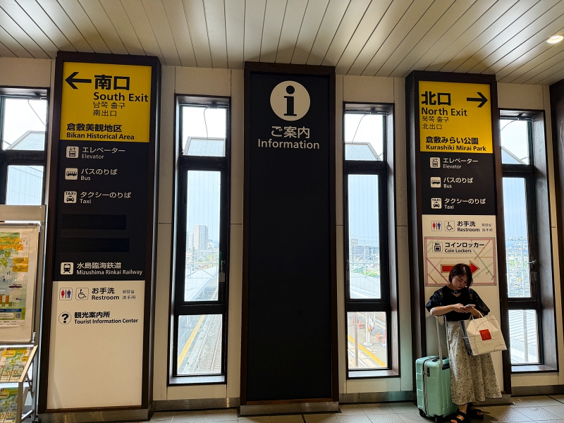 到了倉敷站,往南口過去搭車或者步行都可以!