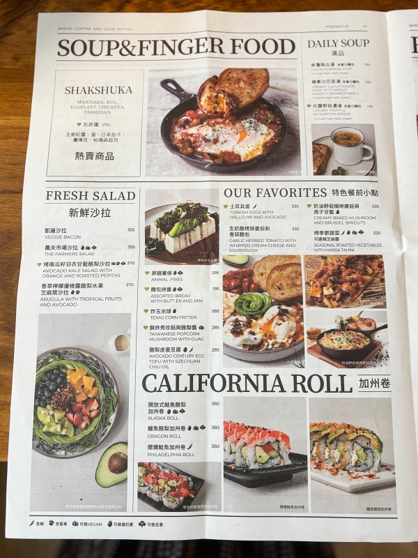 菜單做成美式報紙的樣子,每樣餐點看起來都很美味!