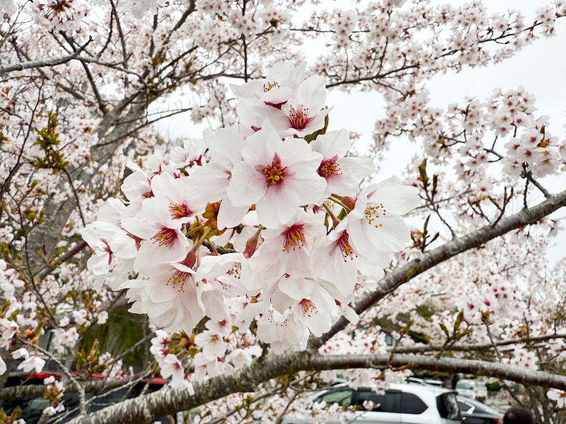 停車場旁就有很多櫻花!