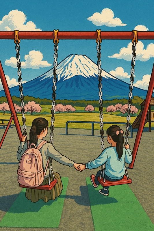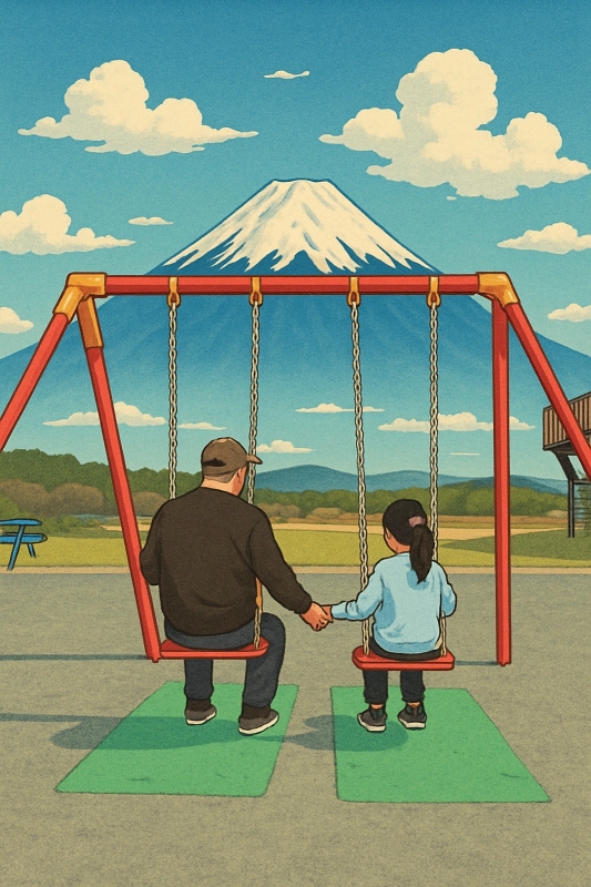 來這盪鞦韆可以和富士山合照!